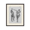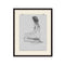 A beautiful sketch on matte paper with a deckled edge, floated on a mat, with artist clips at the top. In a dark grey frame.