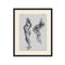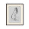 A beautiful sketch on matte paper with a deckled edge, floated on a mat, with artist clips at the top. In a dark grey frame.